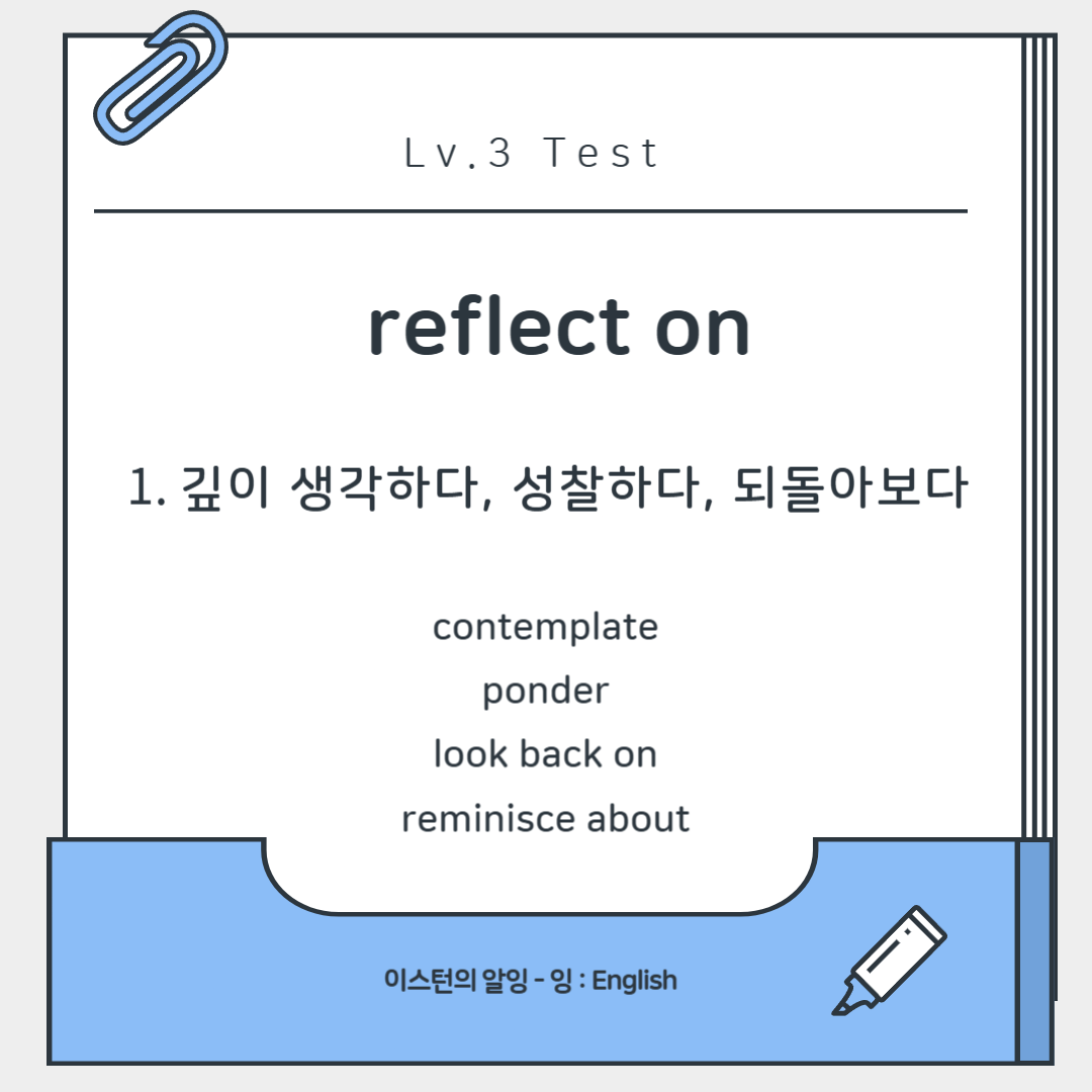 reflect on은 단순히 “생각하다” 이상의 뉘앙스를 가진 고급 구동사 표현입니다.