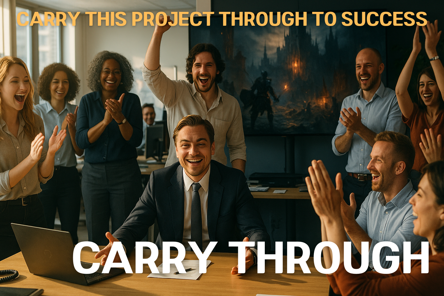 — 팀은 프로젝트를 성공적으로 끝까지 해냈다.